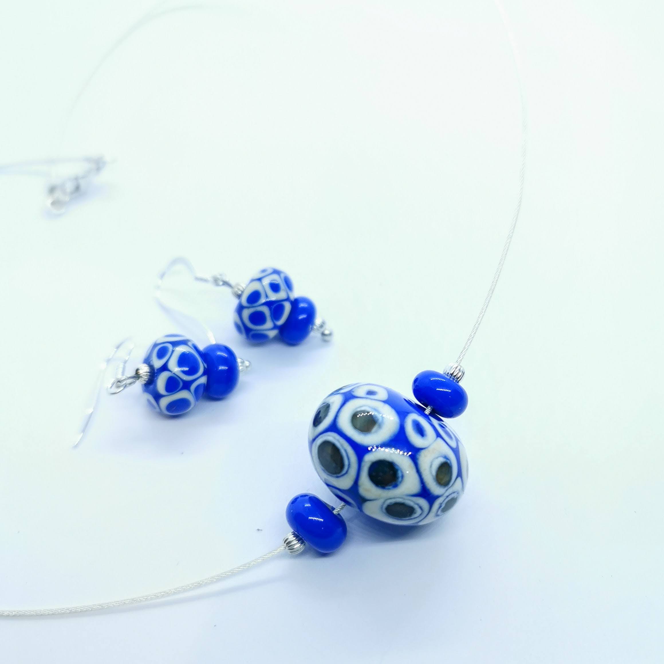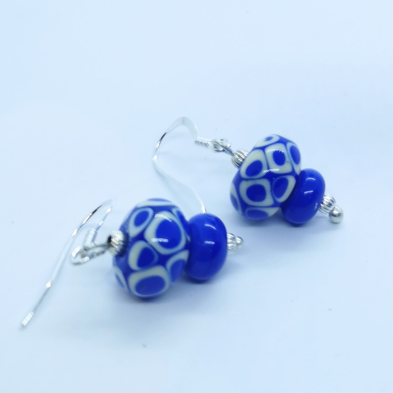 Boucles d’oreilles verre de murano bleu et blanche